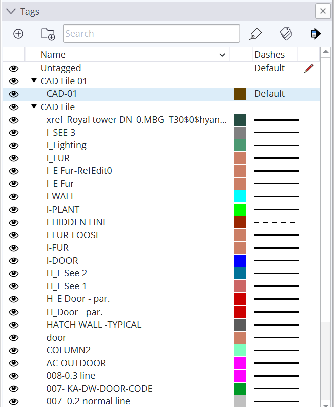 - Or merge all into Layer0 and assign group to new tags ("CAD-01", "CAD-02",…),
